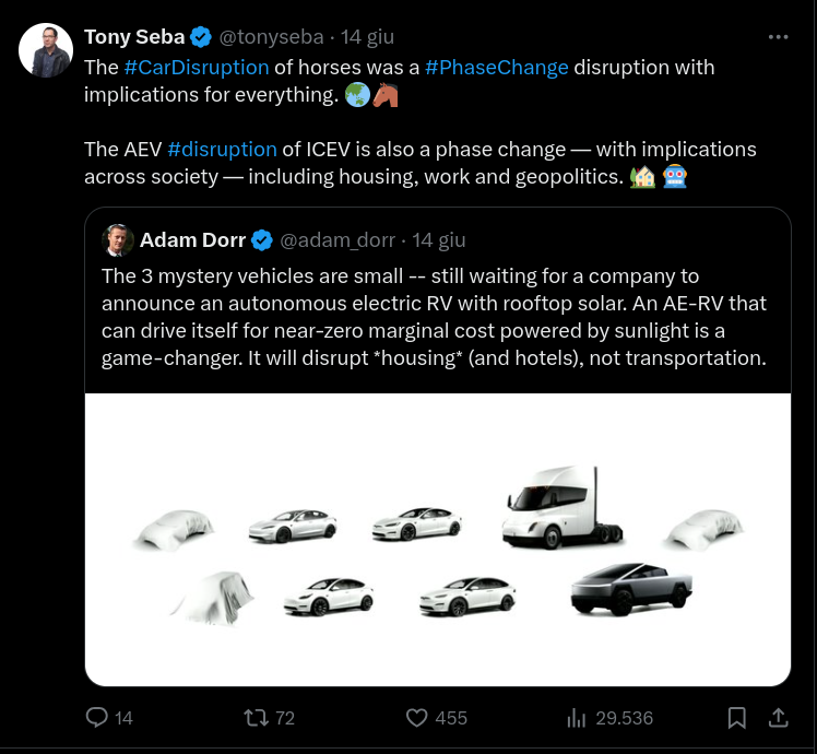 si sa che Elon non vuole vendere auto elettriche, si guadagna troppo poco per la sua mission 'uomo multiplanetario', lui vuole il robotaxi, vuole guadagnare minimo 10 volte tanto per ogni vettura prodotta gestendole direttamente .... quindi magari queste due TOTALI TESTE DI CAZZO FOSSILI REP a Elon vanno benissimo perché bloccheranno le elettriche cinesi (troppo convenienti per finire prestissimo l'auto privata) agevolando il successo dell'auto condivisa