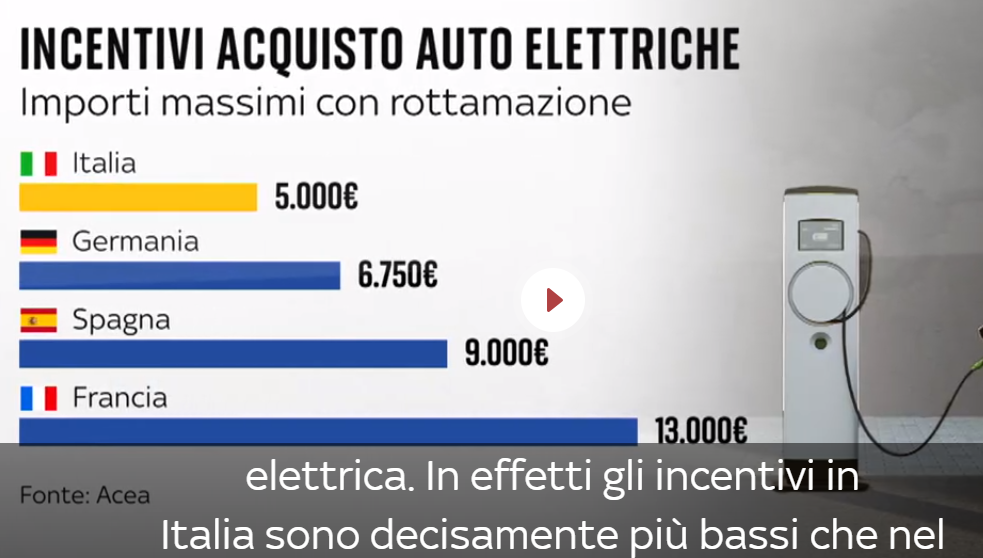 gli incentivi per le elettriche attualmente in vigore da noi sono più bassi degli altri (da noi sono ripartiti quelli dello scorso anno), i francesi hanno anche il 'leasing sociale' a 100 euro al mese